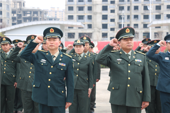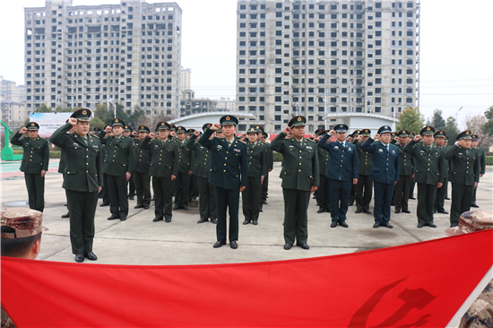 2月26日下午14時,西華縣人武部營區(qū)內(nèi),鮮紅的黨旗迎風飄揚。來自全縣17個鄉(xiāng)鎮(zhèn)、5個城區(qū)辦事處武裝部的全體專武干部黨員與該部現(xiàn)役干部、文職、職工黨員共計60余人集聚這里,隆重集體過“政治生日”。