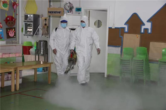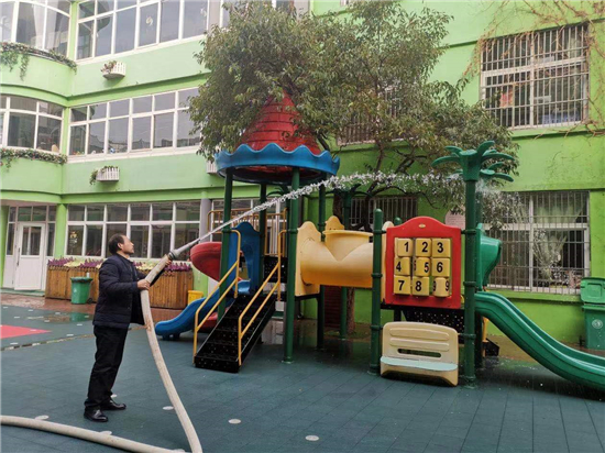 2月27日下午, 周口市市直幼兒園聯(lián)系周口市藍(lán)天救援隊(duì)專業(yè)消殺人員,對(duì)幼兒園的公共區(qū)域環(huán)境、大型玩具、走廊、活動(dòng)室等場所逐步實(shí)施消殺,重點(diǎn)對(duì)樓道、樓梯扶手、衛(wèi)生間等關(guān)鍵區(qū)域?qū)嵤┟芗?,做到全面、徹底、不留死角?/p>