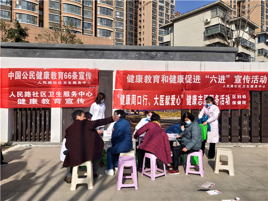3月2日下午,在大慶路與七一路交叉口東北角的街頭游園內(nèi),人民路社區(qū)衛(wèi)生服務(wù)中心在這里開展健康教育和健康促進(jìn)“六進(jìn)”宣傳活動(dòng)?;顒?dòng)現(xiàn)場,量血壓、測血糖、免費(fèi)體檢等服務(wù),讓周邊居民體會(huì)到滿滿的關(guān)懷。