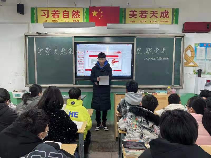 突出形式新。打破“我說你聽”的灌輸式教育,通過啟發(fā)式、討論式教學(xué),開展升旗活動(dòng)、舉行知識競賽、召開主題班會等形式找到思想政治與青春人生的結(jié)合點(diǎn),讓以“黨史”教育為重點(diǎn)的“四史”教育走進(jìn)學(xué)生的心靈,引發(fā)學(xué)生的情感共鳴,切實(shí)提高教育的思想性、理論性、針對性和親和力。