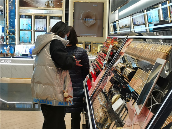 “精致的生活需要儀式感,把自己打扮得漂漂亮亮的,是對(duì)自己的關(guān)愛。”在一商場(chǎng)的化妝品專柜前,一對(duì)正在選購(gòu)化妝品的母女說。