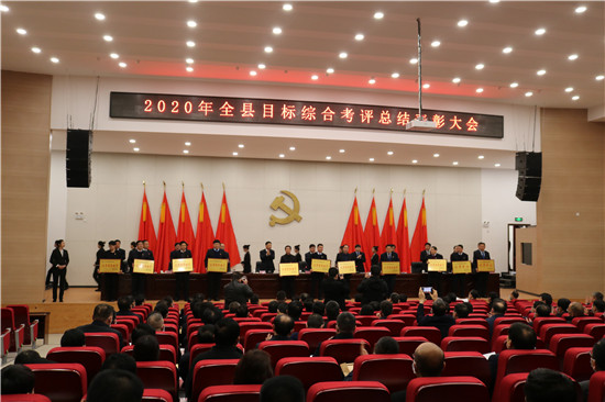 會(huì)議宣讀了《關(guān)于2020年度縣管領(lǐng)導(dǎo)班子綜合考評(píng)結(jié)果的通報(bào)》《關(guān)于給與縣衛(wèi)生健康委員會(huì)通令嘉獎(jiǎng)、魏軍同志記三等功獎(jiǎng)勵(lì)的決定》《關(guān)于對(duì)為鹿邑獲得省部級(jí)以上榮譽(yù)做出突出貢獻(xiàn)單位通令嘉獎(jiǎng)的決定》《關(guān)于印發(fā)<鹿邑縣2021年推進(jìn)高質(zhì)量發(fā)展目標(biāo)綜合考評(píng)辦法>的通知》。會(huì)議還對(duì)2020年度目標(biāo)綜合考評(píng)優(yōu)秀單位、獲得省部級(jí)以上榮譽(yù)做出突出貢獻(xiàn)單位進(jìn)行了頒獎(jiǎng)。
