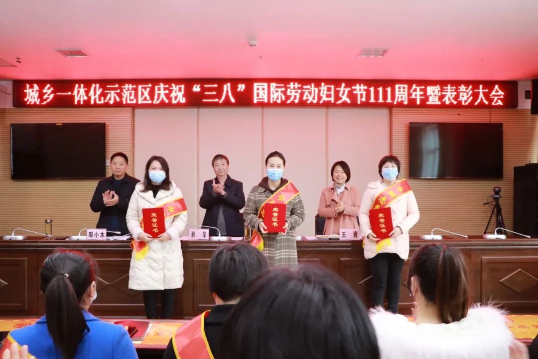 柔肩擔(dān)重任,巾幗立新功。掌聲、祝賀聲、榮譽(yù)證書、大紅飄帶……3月5日下午,周口市城鄉(xiāng)一體化示范區(qū)慶?!叭恕眹H勞動(dòng)?jì)D女節(jié)111周年暨表彰大會(huì)召開,示范區(qū)二級(jí)調(diào)研員韓華出席會(huì)議并講話。會(huì)上,全區(qū)共表彰“三八”紅旗集體6個(gè)、“三八”紅旗手15名、巾幗建功標(biāo)兵13名、婦女工作先進(jìn)個(gè)人7名、巾幗志愿者34名。