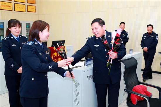 活動前,副縣長,縣公安局黨委書記、局長陳鳳祥帶領(lǐng)班子成員先后來到110指揮中心和控申大隊等單位,親切看望慰問女警,并到崗位上向女警贈送鮮花。