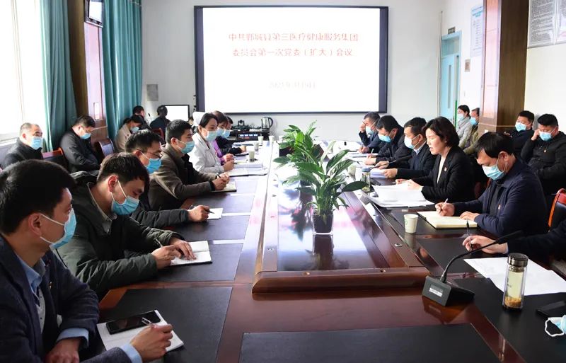 3月5日下午,中共鄲城縣第三醫(yī)療健康服務(wù)集團(tuán)委員會第一次黨委(擴(kuò)大)會議在總醫(yī)院鄲城縣中心醫(yī)院(原鄲城二院)小會議室召開。集團(tuán)黨委委員出席,總醫(yī)院及轄區(qū)基層醫(yī)療衛(wèi)生單位黨支部委員參加,黨辦主任韓學(xué)貞主持會議。