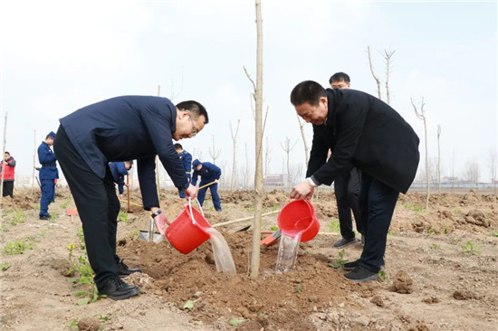 閆立超拿起鐵鍬,嫻熟地給剛剛栽入樹穴的封土,還不忘給大家分享自己的勞動(dòng)經(jīng)驗(yàn):“栽樹講究的是‘三深一實(shí)’,做到‘三踏一提澆足水’,才能保證成活率。”封完土后,閆立超、張建黨共同為剛植的樹澆水。閆立超邊勞動(dòng)邊叮囑相關(guān)負(fù)責(zé)人,根據(jù)目前的土壤墑情和天氣雨水情況,大家要抓緊植樹的黃金期,早部署、早行動(dòng),結(jié)合土壤條件科學(xué)選擇造林樹種,合理安排人員和機(jī)械,確保植樹成活率,保證綠化項(xiàng)目建設(shè)有成效。