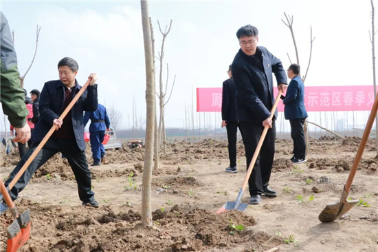 又是一年春光好,植樹造林正當(dāng)時(shí)。3月10日上午,周口市城鄉(xiāng)一體化示范區(qū)2021年春季義務(wù)植樹活動(dòng)在建業(yè)綠色基地舉行。此舉也標(biāo)志著全區(qū)國家森林城市、國家生態(tài)園林城市、全國文明城市創(chuàng)建工作再次吹響沖鋒號(hào)。區(qū)黨工委書記閆立超、區(qū)管委會(huì)主任張建黨等區(qū)領(lǐng)導(dǎo)班子來到義務(wù)植樹點(diǎn),與干部職工一同義務(wù)植樹,為示范區(qū)的環(huán)境美化增綠添彩。