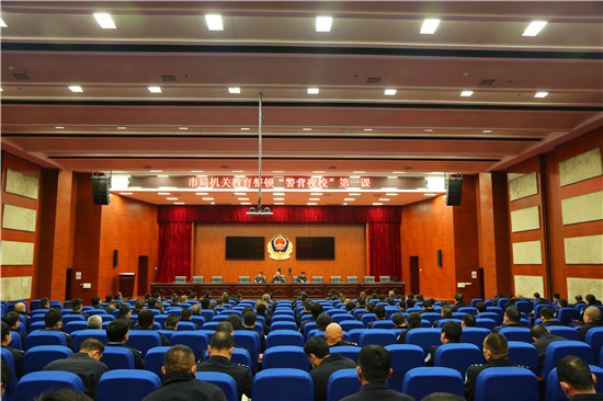 3月10日晚,“警營夜校”第一課正式開班開講。市公安局黨委委員、政治部主任郭冰與230名副科職以上民警一起參加學習。市公安局政治部黨支部副書記、三級高級警長韓鳳城主持第一課。