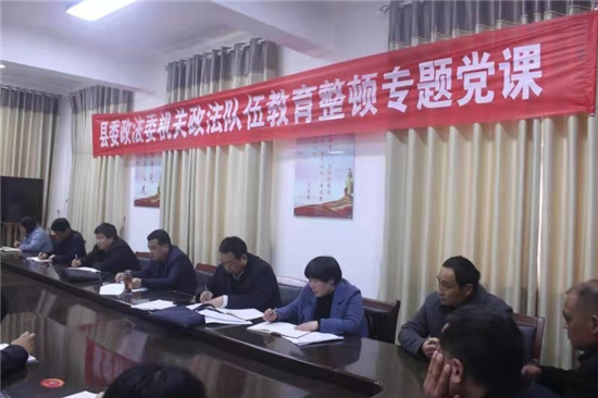 3月11日下午,西華縣政法委召開政法隊(duì)伍教育整頓《學(xué)黨史》動員會,縣委常委、政法委書記陳秉生主講《中國共產(chǎn)黨誕生史》黨課??h委政法委常務(wù)副書記袁昶主持黨課學(xué)習(xí)。