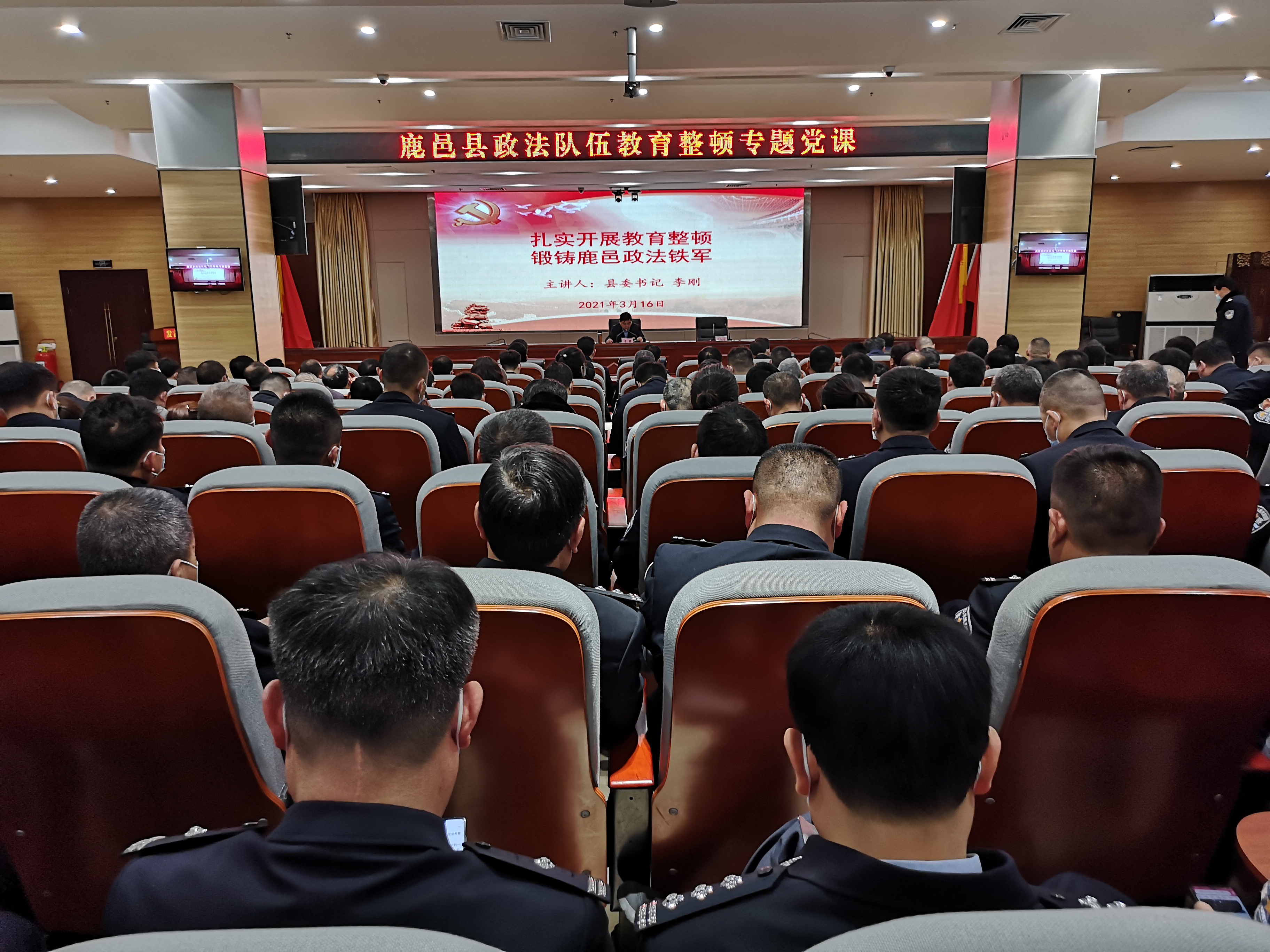 3月16日,鹿邑縣委書(shū)記、縣政法隊(duì)伍教育整頓領(lǐng)導(dǎo)小組組長(zhǎng)李剛以“扎實(shí)開(kāi)展教育整頓 鍛鑄鹿邑政法鐵軍”為題,在縣文化中心第一會(huì)議室為全縣政法隊(duì)伍上了一堂生動(dòng)的教育整頓專(zhuān)題黨課??h委常委、組織部部長(zhǎng)楊所超,縣委常委、縣委政法委書(shū)記張國(guó)慶,縣委常委、紀(jì)委書(shū)記、監(jiān)委主任金溪,縣政府副縣長(zhǎng)、縣公安局長(zhǎng)任金瑞,縣法院院長(zhǎng)張述濤和全縣政法戰(zhàn)線(xiàn)部分黨員干部一起聆聽(tīng)了專(zhuān)題黨課。