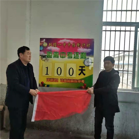 大會在雄壯的國歌聲中拉開帷幕。孟獻(xiàn)峰與田振為中考倒計時牌揭幕。隨后,中心校拿出兩千元現(xiàn)金,對該校一??荚囍腥〉脙?yōu)異成績的同學(xué)進(jìn)行表彰。
