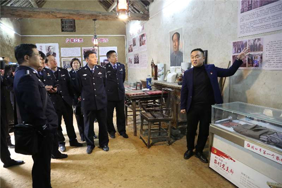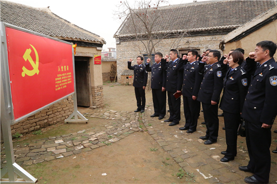與此同時,在崗張村支部舊址門前,面對莊嚴的黨旗和警旗,該縣公安局政辦室主任邱亞龍帶領(lǐng)全體黨員民警莊嚴地高舉右拳,重溫了入黨、入警誓詞。