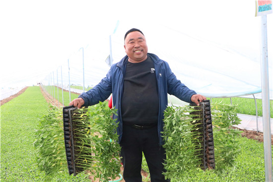 正在育苗的村民楊大姐告訴記者,她一大早就開(kāi)始工作了,日常是澆水施肥,今天把大棚外的空地播撒有機(jī)肥,一天上午、下午兩場(chǎng),每天可以掙60元錢(qián),一個(gè)月1000多呢,比以前在家掐辮子掙得多。