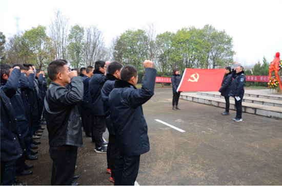 在鮮艷的黨旗下,全體黨員莊嚴舉起右手,重溫入黨誓詞。隨后,全體黨員繞烈士紀念碑緩緩而行,瞻仰先烈,觀看烈士墓志銘。