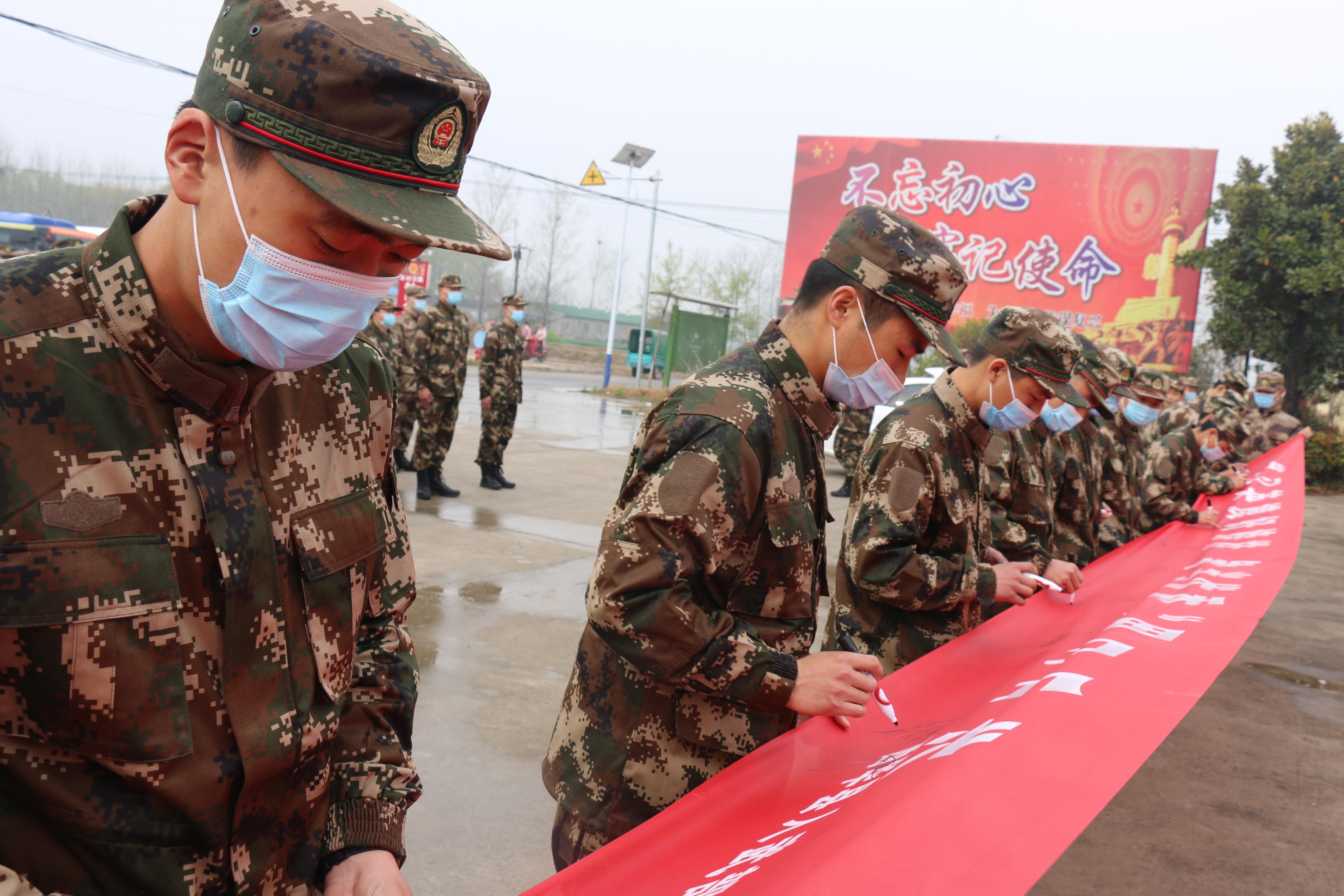 最后,全體新兵紛紛在學(xué)習(xí)英模好榜樣,爭(zhēng)當(dāng)優(yōu)秀“周口兵”大紅橫幅前宣誓簽字表決心:一定要傳承革命先烈英勇意志,絕不辜負(fù)祖國(guó)和人民的重托,堅(jiān)定走好軍旅人生每一步,做‘四有’新時(shí)代革命軍人?!?/p>