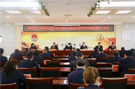 3月11日,鄲城縣人民檢察院召開(kāi)隊(duì)伍教育整頓部署推進(jìn)會(huì)暨黨風(fēng)廉政建設(shè)工作會(huì)。會(huì)議深入學(xué)習(xí)貫徹習(xí)近平新時(shí)代中國(guó)特色社會(huì)主義思想,特別是習(xí)近平法治思想,全面貫徹落實(shí)全國(guó)、全省、全市、全縣政法隊(duì)伍教育整頓動(dòng)員部署會(huì)和高檢院、省院、市院檢察隊(duì)伍教育整頓動(dòng)員部署會(huì)暨黨風(fēng)廉政建設(shè)會(huì)議精神??偨Y(jié)2020年縣檢察院全面從嚴(yán)管黨治檢工作,分析新形勢(shì)新任務(wù),對(duì)縣檢察院檢察隊(duì)伍教育整頓和今年的黨風(fēng)廉政建設(shè)工作統(tǒng)籌作出安排部署。