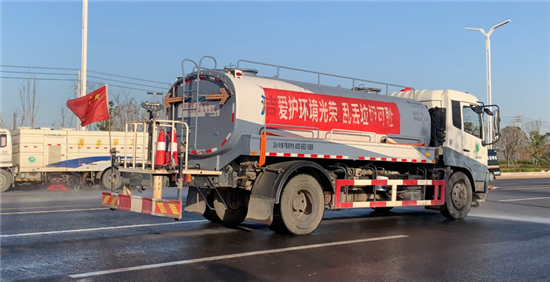 3月22日上午,記者在商水縣溵川大道東段拍到一段灑水車作業(yè)的畫面,畫面里灑水車勻速行駛著,當灑水車走近,聽到灑水車上傳出《歌唱祖國》的曲子。當灑水車路過溵川大道與八一大道交叉口處時,記者看到等紅燈的市民跟著《歌唱祖國》的曲子唱了起來:“五星紅旗迎風飄揚,勝利歌聲多么嘹亮……”