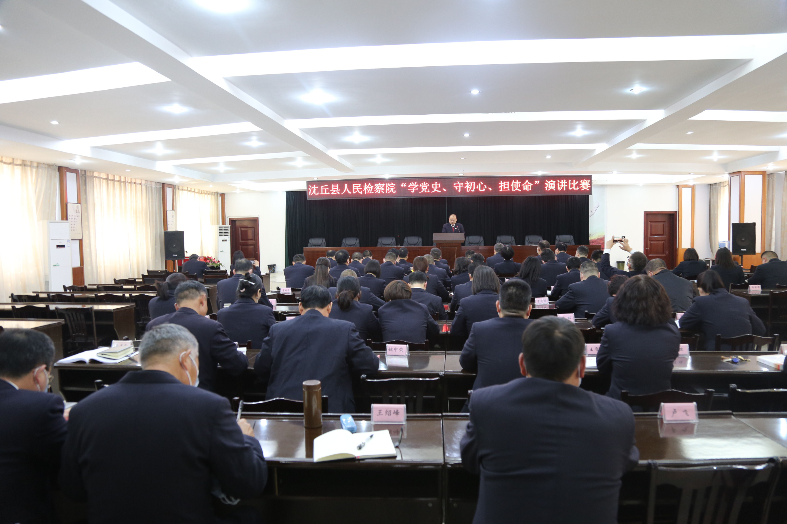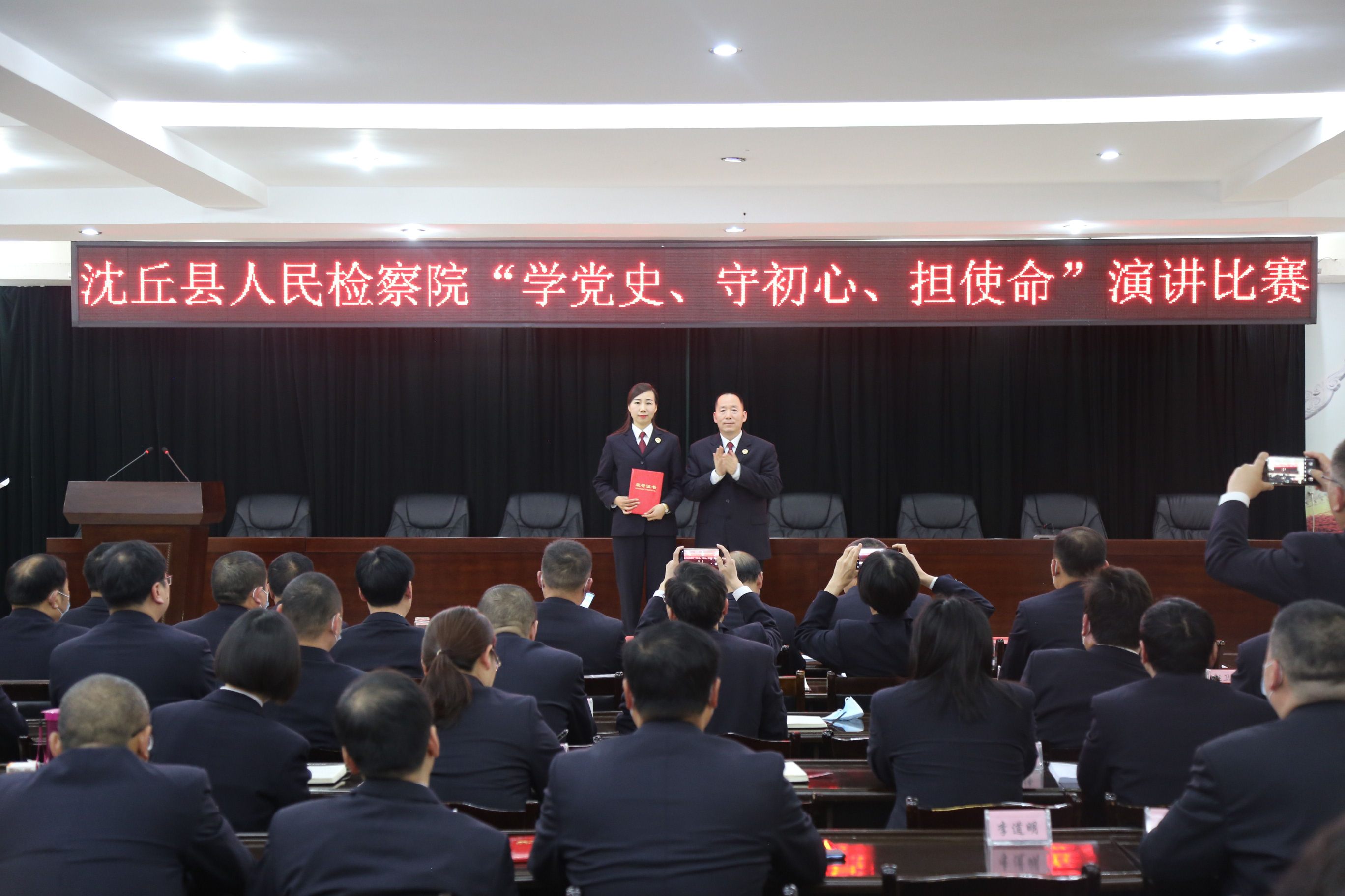 為進(jìn)一步深化全體干警對(duì)政法隊(duì)伍教育整頓工作重要性的認(rèn)識(shí),進(jìn)一步激發(fā)干警參與教育整頓的積極性和主動(dòng)性,3月23日下午,沈丘縣人民檢察院開展了“學(xué)黨史、守初心、擔(dān)使命”政法隊(duì)伍教育整頓主題演講比賽,沈丘縣人民檢察院黨組書記、檢察長李世龍帶領(lǐng)院領(lǐng)導(dǎo)班子成員擔(dān)任評(píng)委,黨組副書記、副檢察長作了賽前講話,比賽由黨組成員、政治部主任胡新建主持。