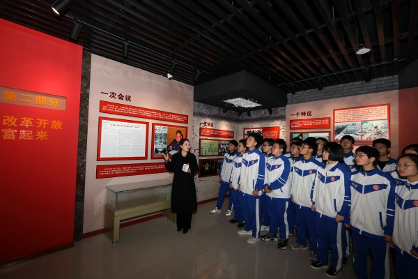 圖為同學(xué)們駐足在一幅幅生動的歷史畫面前,認(rèn)真聆聽政治課教師李衛(wèi)衛(wèi)的講解,用心靈感知中國共產(chǎn)黨帶領(lǐng)中國人民披荊斬棘、篳路藍(lán)縷,實(shí)現(xiàn)民族獨(dú)立、國家富強(qiáng)的光輝歷史。記者張洪濤 通訊員 蘇獻(xiàn)智 攝 ③5