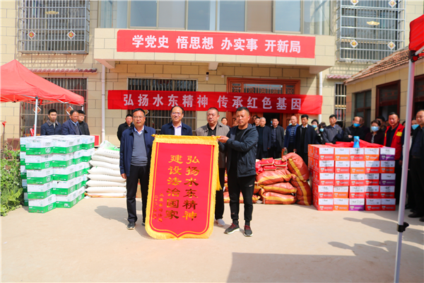 捐款捐物,助力舊址復(fù)原建設(shè)。參觀學(xué)習(xí)活動結(jié)束后,路凱杰組織司法行政干警為聚臺崗紅色水東文旅紀(jì)念工程項目捐款,助力弘揚水東精神,傳承紅色基因,并代表全縣司法行政系統(tǒng)隊伍為水東革命舊址復(fù)原建設(shè)一線工人捐贈大米50袋、面粉20袋、食用油40桶、礦泉水50件、方便面50箱、豬肉80余斤。高賢鄉(xiāng)黨委書記鄭宏對他們的到來表示歡迎,對司法局的捐贈表示感謝,并向大家介紹了工程各項目進展情況。