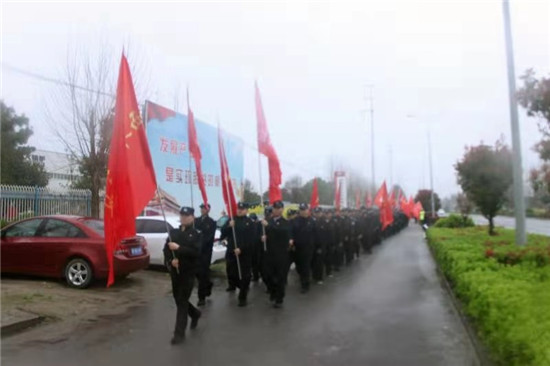 14時(shí),參加拉練的全體干警準(zhǔn)時(shí)在活動(dòng)起點(diǎn)國(guó)家計(jì)委西華“五七”干校舊址,整齊列隊(duì)。在縣委常委、政法委書(shū)記,縣政法隊(duì)伍教育整頓領(lǐng)導(dǎo)小組副組長(zhǎng)兼辦公室主任陳秉生同志的一聲令下,全縣300多名政法干警在黨旗和支部旗幟的引領(lǐng)下,冒著大雨,從“五七”干校出發(fā),一路走到杜崗會(huì)師紀(jì)念館,全程10多公里。一路上大家熱情高漲、唱著革命歌曲、喊著口號(hào),互相鼓勁,順利抵達(dá)目的地。在“杜崗會(huì)師”紀(jì)念館門(mén)前進(jìn)行了重溫入黨誓詞活動(dòng)。