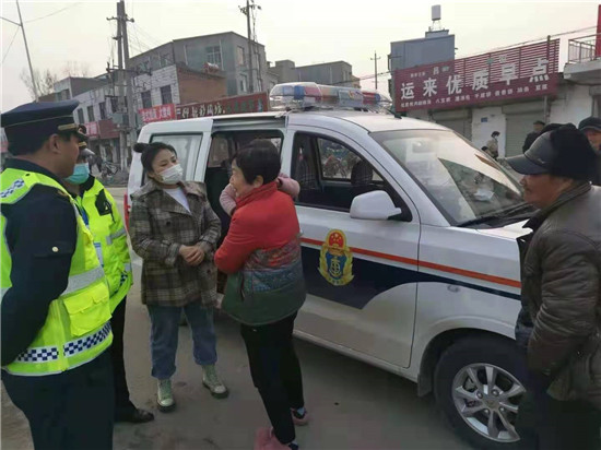 淮陽區(qū)城市交通綜合治理辦公室工作人員幫助走失孩子找回家人。