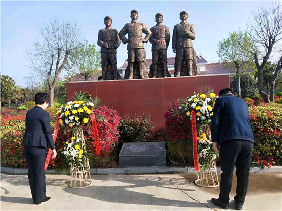 參觀學(xué)習(xí)團黨員干部向彭雪楓烈士紀(jì)念碑敬獻了花籃,寄托哀思。
