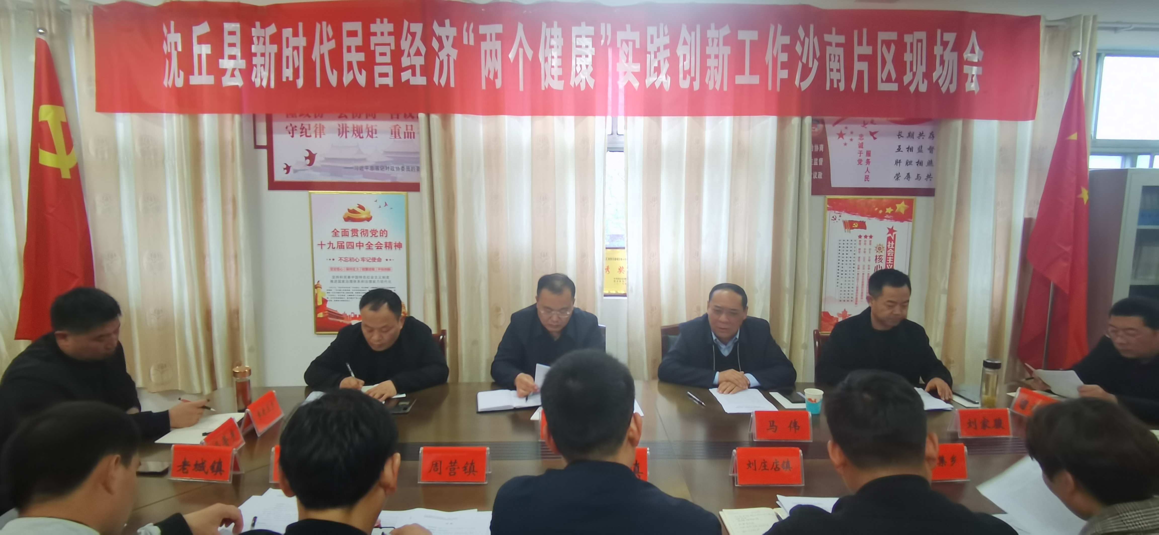 3月26日,沈丘縣召開新時代民營經(jīng)濟“兩個健康”實踐創(chuàng)新現(xiàn)場會??h委常委、統(tǒng)戰(zhàn)部長馬偉,副縣長張勇出席會議并講話??h工商聯(lián)、縣民營經(jīng)濟服務中心、白集鎮(zhèn)政府、周營鎮(zhèn)政府相關負責人及全縣22個鄉(xiāng)鎮(zhèn)(辦)商會組織代表參加會議。
