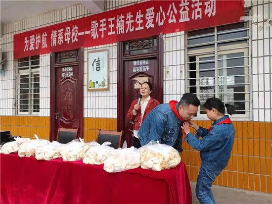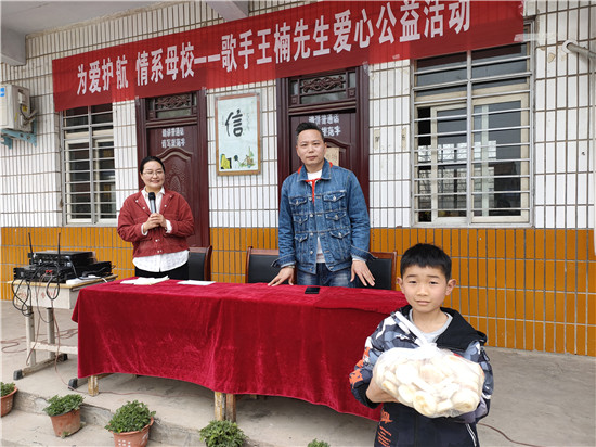原來,該縣馬廠鎮(zhèn)回族小學(xué)畢業(yè)的歌手王楠,感恩母?,F(xiàn)場為380余名師生送上了壓縮饃,還演唱了《最親的人》《新闖碼頭》等歌曲。很多留守兒童,吃著帶有暖意的壓縮饃,聽著悅耳動聽的歌曲,留下了感動的淚水。
