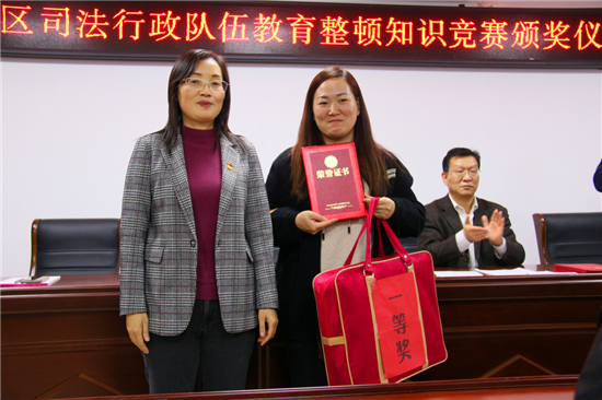 本次競賽采取抽簽分組閉卷考試,競賽知識涵蓋政法隊伍教育整頓應知應會、黨史學習教育、政治理論等。參賽人員范圍為全區(qū)司法行政隊伍全體在編在職干警??荚囈袁F(xiàn)場抽號,根據(jù)序號入座,現(xiàn)場抽取試卷、現(xiàn)場改卷評分形式進行評選排名。根據(jù)考試分數(shù)并排出名次,現(xiàn)場宣布競賽結果。評出一等獎1名、二等獎3名、三等獎6名,頒發(fā)證書和獎品。