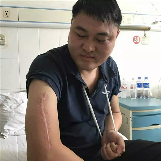 彼時(shí),嫌疑人駕駛?cè)嗆嚡偪裉痈Z至一片樹林,孫艷峰立即繞過樹林飛奔到嫌疑人車前,同時(shí)大聲警告他停車,嫌疑人喪心病狂,加速向?qū)O艷峰撞來,孫艷峰展開雙臂,用自己的身體擋住了嫌疑人的去路,左臂火辣辣的劇痛直鉆心底,嫌疑人跳車奪路而逃。忍著劇痛,孫艷峰只能死死拉住嫌疑人,最終在隊(duì)員的配合下,成功將嫌疑人抓獲。這時(shí),孫艷峰才發(fā)現(xiàn)自己左肩脫臼、右腿大面積擦傷。將嫌疑人帶回縣辦案中心后,孫艷峰劇痛難忍,到醫(yī)院檢查,發(fā)現(xiàn)左肩關(guān)節(jié)盂粉碎性骨折。