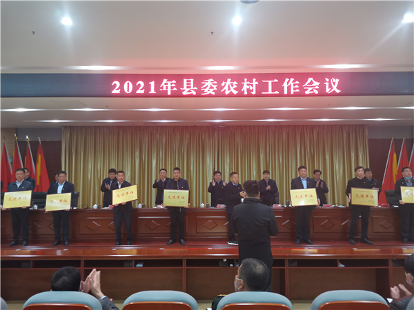 郭俊濤就貫徹落實會議精神及下一步農(nóng)村工作進行具體安排部署。縣委副書記許四軍宣讀了縣委、縣政府關(guān)于表揚2020年度農(nóng)業(yè)農(nóng)村工作先進單位、先進個人的通報。會議還對受表彰的先進單位代表進行了頒獎。