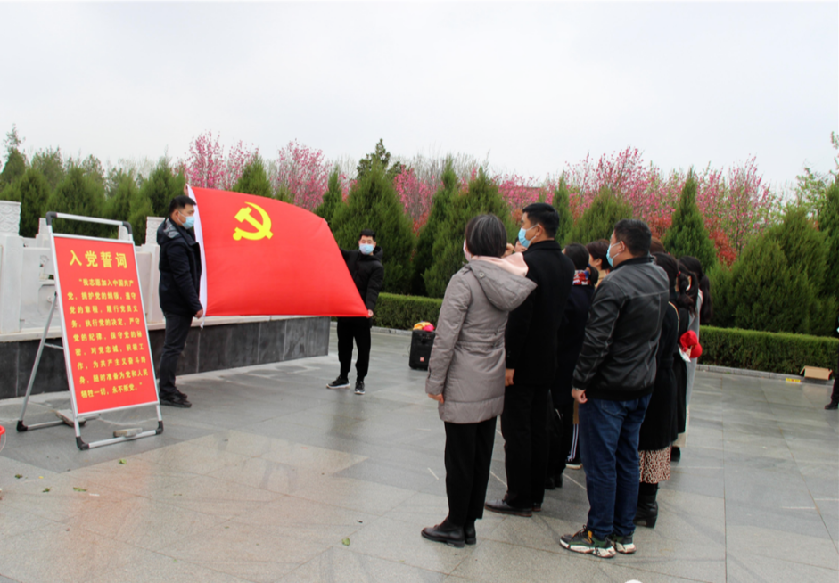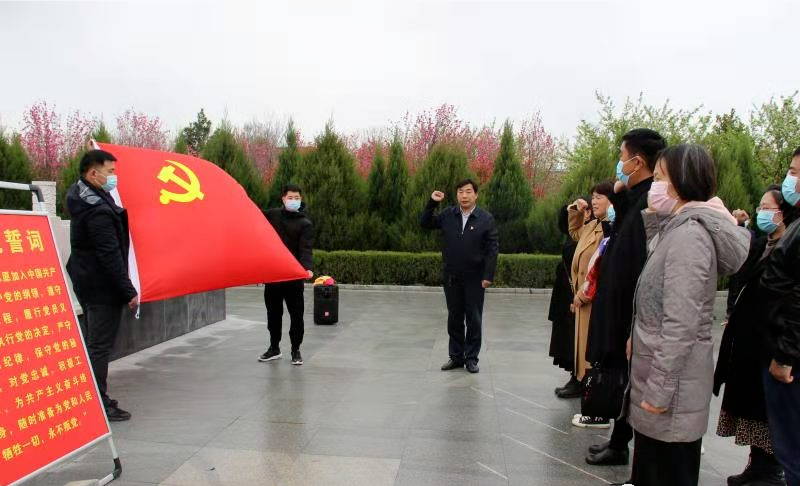 面對(duì)黨旗重溫入黨誓。隨后,大家有序?yàn)榘苍嵩诹陥@的英雄烈士擦拭墓碑、清理雜草。 大家紛紛表示,一定銘記歷史,珍惜現(xiàn)在的美好生活,以英雄為榜樣,認(rèn)真工作,以優(yōu)異成績(jī)慶祝建黨100周年。