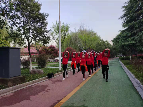 “一!二!三!四!”4月4日清晨,周口公園內(nèi)一支健步走愛(ài)好者身著紅色衛(wèi)衣,在潦亮的口號(hào)聲中,邁著嬌健的步伐,在鮮花綠葉中行進(jìn),撒下一路青春的氣息。②7