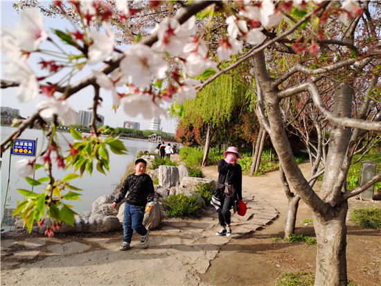 最美四月天,踏青正當(dāng)時(shí)。清明節(jié)期間,周口公園、植物園里金黃的連翹、婀娜多姿的美人梅、鵝黃嫩綠的新柳、盛開的桃花……一片生機(jī)盎然、春意融融的景象,市民紛紛來(lái)到戶外,沐浴春光,擁抱大自然,悠閑享受假日時(shí)光。②9