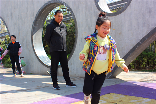 “之前小長(zhǎng)假一般都是宅在家里看電視,去景區(qū)玩吧人太多,帶著孩子也不方便,現(xiàn)在家門(mén)前就是景,帶著孩子出來(lái)轉(zhuǎn)轉(zhuǎn),心情非常好?!闭诖髴c路旁的小游園里散步的張女士說(shuō)。