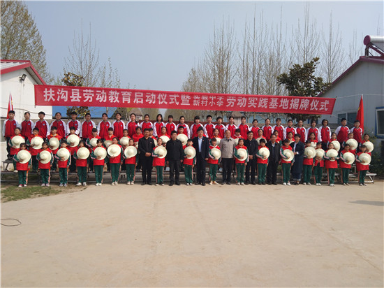 “要幫助學生樹立正確的勞動觀念,具有必備的勞動能力,培育他們積極的勞動精神,使之深刻領會‘幸福是奮斗出來的’內(nèi)涵與意義,促使學生養(yǎng)成良好的勞動習慣和品質(zhì)?!眱x式在莊嚴的國歌聲中打開了帷幕,副縣長史凱歌致辭,縣教體局局長葛偉宣布扶溝縣勞動教育正式啟動。隨后,與會領導共同為實驗中學和新村小學勞動基地揭牌,與學生一起參加了勞動實踐活動。