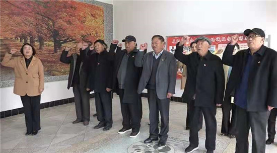 會后,縣委組織部副部長張玉潔帶領(lǐng)老同志們,在鮮紅的黨旗下,莊嚴地舉起右手,重溫入黨誓詞,再次接受心靈洗禮。