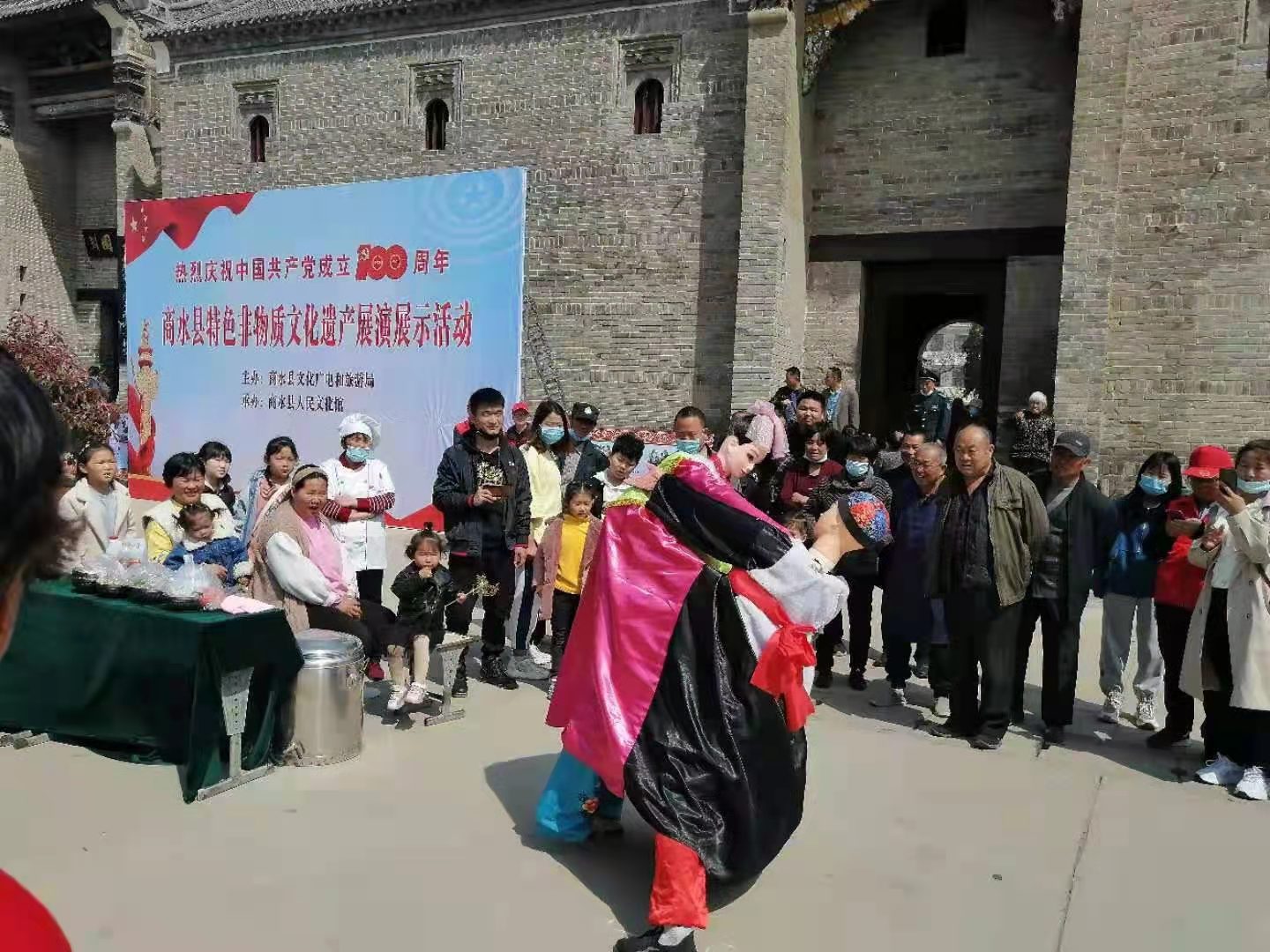 商水縣民俗特色節(jié)目二鬼扳跤、青銅制作技藝、糖畫藝術、龍燈旱船等精彩紛呈,不時引來群眾的熱烈掌聲。麥秸畫制作技藝、鄧城豬蹄等商水非遺文化項目,通過圖文并茂的展板,向廣大群眾呈現(xiàn)出了商水縣非遺傳承發(fā)展的生動實踐。