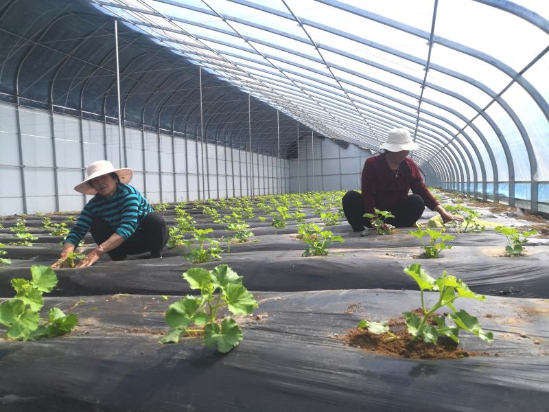 “當下,正逢‘吊秧’香瓜生長旺盛的時候,這幾天,我和馮大姐一直在大棚里忙活,每天有事兒干、有人陪說話,還可以掙到60元的工錢,就在家門口,多好啊!”4月8日,在半截樓村新建的溫室大棚內(nèi),65歲的李愛蓮一邊忙著為瓜秧打岔,一邊對記者說。