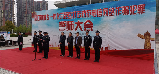 4月11日,市城鄉(xiāng)一體化示范區(qū)舉行打擊防范電信網(wǎng)絡(luò)詐騙犯罪千人誓師大會。示范區(qū)管委會二級調(diào)研員丁有亮,周口公安局示范區(qū)分局黨委書記、局長何學(xué)民出席大會。周口公安局示范區(qū)分局民警,示范區(qū)各鄉(xiāng)辦人員,周口師范學(xué)院、周口科技職業(yè)大學(xué)、周口交通技師學(xué)院師生代表近千人參加誓師大會。