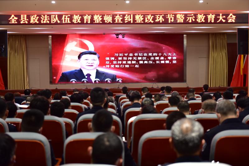 4月14日,鹿邑縣在縣文化中心第一會議室召開全縣政法隊伍教育整頓查糾整改環(huán)節(jié)警示教育和政策宣講大會。縣委委常委、政法委書記張國慶主持會議并講話??h委常委、縣紀委書記、監(jiān)委主任金溪,縣政府副縣長、縣公安局局長任金瑞,縣人民法院院長張述濤,縣人民檢察院檢察長魯建軍出席會議。