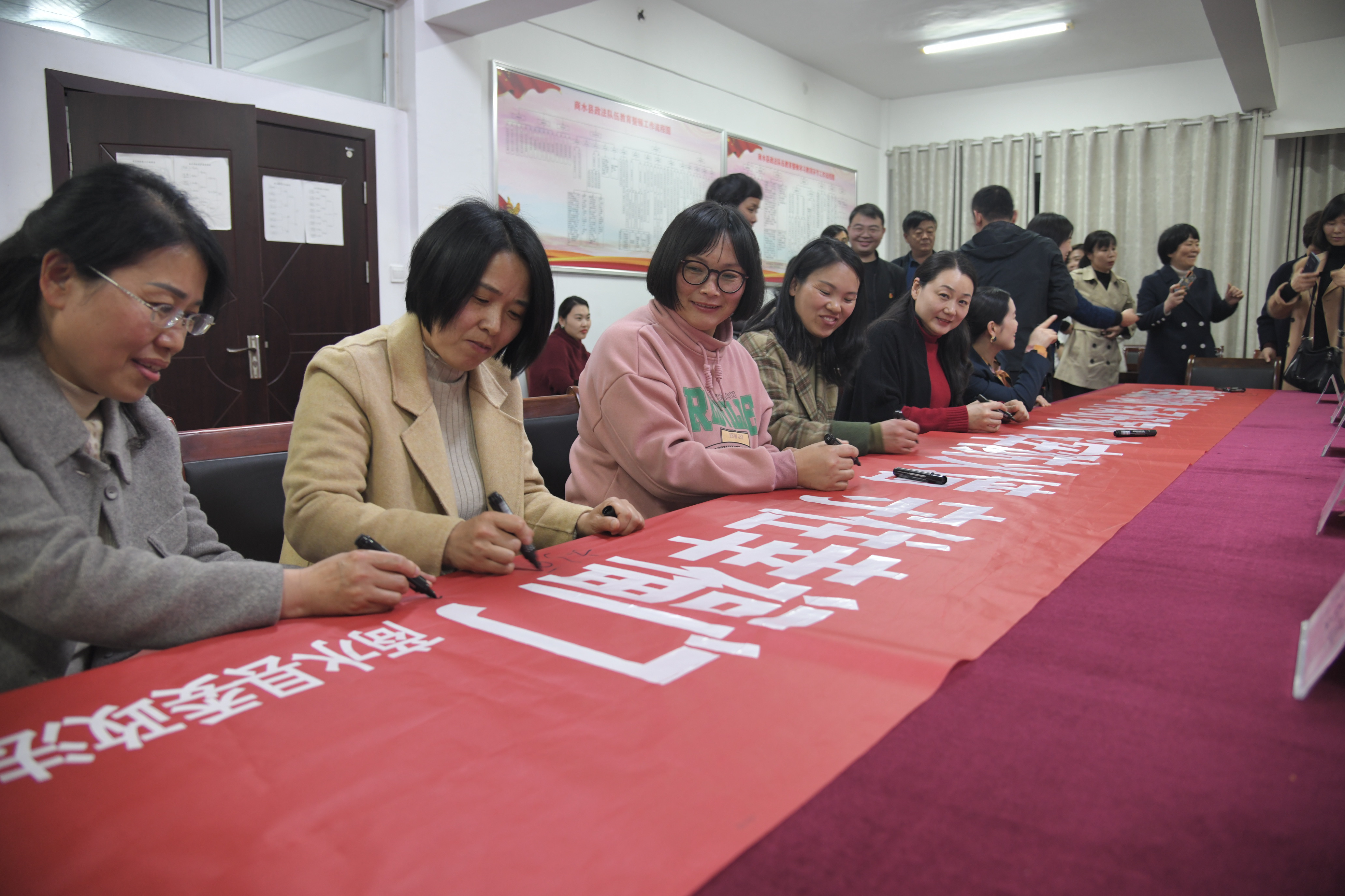 課后,工作人員向與會家屬發(fā)放了《致家屬的一封信》,參會干部和家屬分別在寫有“爭當(dāng)廉內(nèi)助 傳承好家風(fēng) 筑牢防火墻 守住幸福門”的橫幅(倡議書)上簽上自己的名字。