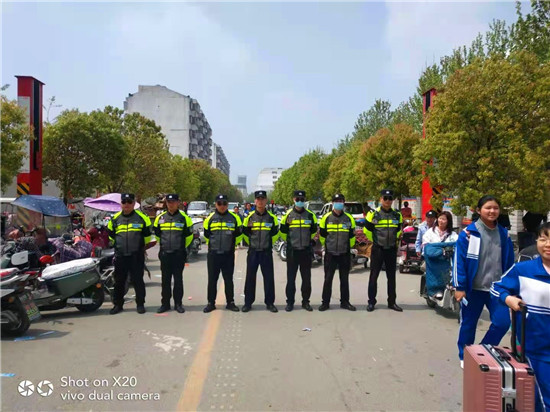 在七八年級(jí)到九年級(jí)段集中離校的兩天時(shí)間內(nèi),縣交警大隊(duì)鐵騎中隊(duì)負(fù)責(zé)人何濤帶領(lǐng)執(zhí)勤民警一直堅(jiān)守在學(xué)校周邊執(zhí)勤崗位,全身心的投入工作,加強(qiáng)交通疏導(dǎo),分流過(guò)往車(chē)輛,并向?qū)W生和家長(zhǎng)宣傳交通安全常識(shí),確保學(xué)生和家長(zhǎng)平安回家。他們站在路口和車(chē)流中認(rèn)真執(zhí)勤,指揮車(chē)輛有序通行,耐心勸導(dǎo)車(chē)輛繞道,接受過(guò)往司機(jī)咨詢(xún),及時(shí)疏導(dǎo)易堵路段,一直堅(jiān)持到全部學(xué)生、家長(zhǎng)離校才收隊(duì)撤離,以實(shí)際行動(dòng)保障了數(shù)千名學(xué)生的平穩(wěn)、安全、有序離校,在學(xué)生家長(zhǎng)中間產(chǎn)生了積極的影響,贏(yíng)得了家長(zhǎng)學(xué)生的一致贊賞,以安全護(hù)航保師生平安,切實(shí)實(shí)現(xiàn)了讓家長(zhǎng)放心,學(xué)生舒心的良好社會(huì)效應(yīng)。②2