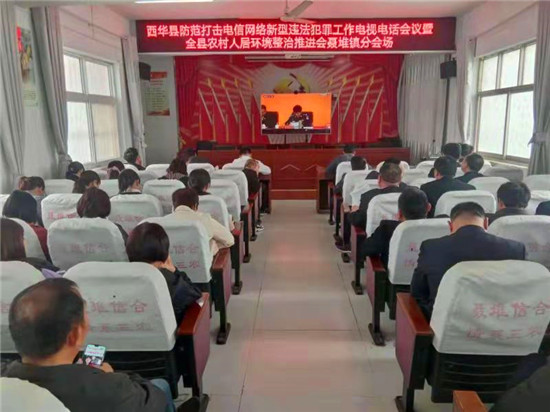 4月16日,西華縣防范打擊電信網(wǎng)絡(luò)新型違法犯罪工作電視電話(huà)會(huì)議暨全縣農(nóng)村人居環(huán)境整治推進(jìn)會(huì)以視頻會(huì)議形式召開(kāi)。聶堆鎮(zhèn)在鎮(zhèn)政府三樓會(huì)議室設(shè)置分會(huì)場(chǎng),組織鎮(zhèn)政府全體干部、派出所所長(zhǎng)、各村支部書(shū)記參加會(huì)議。