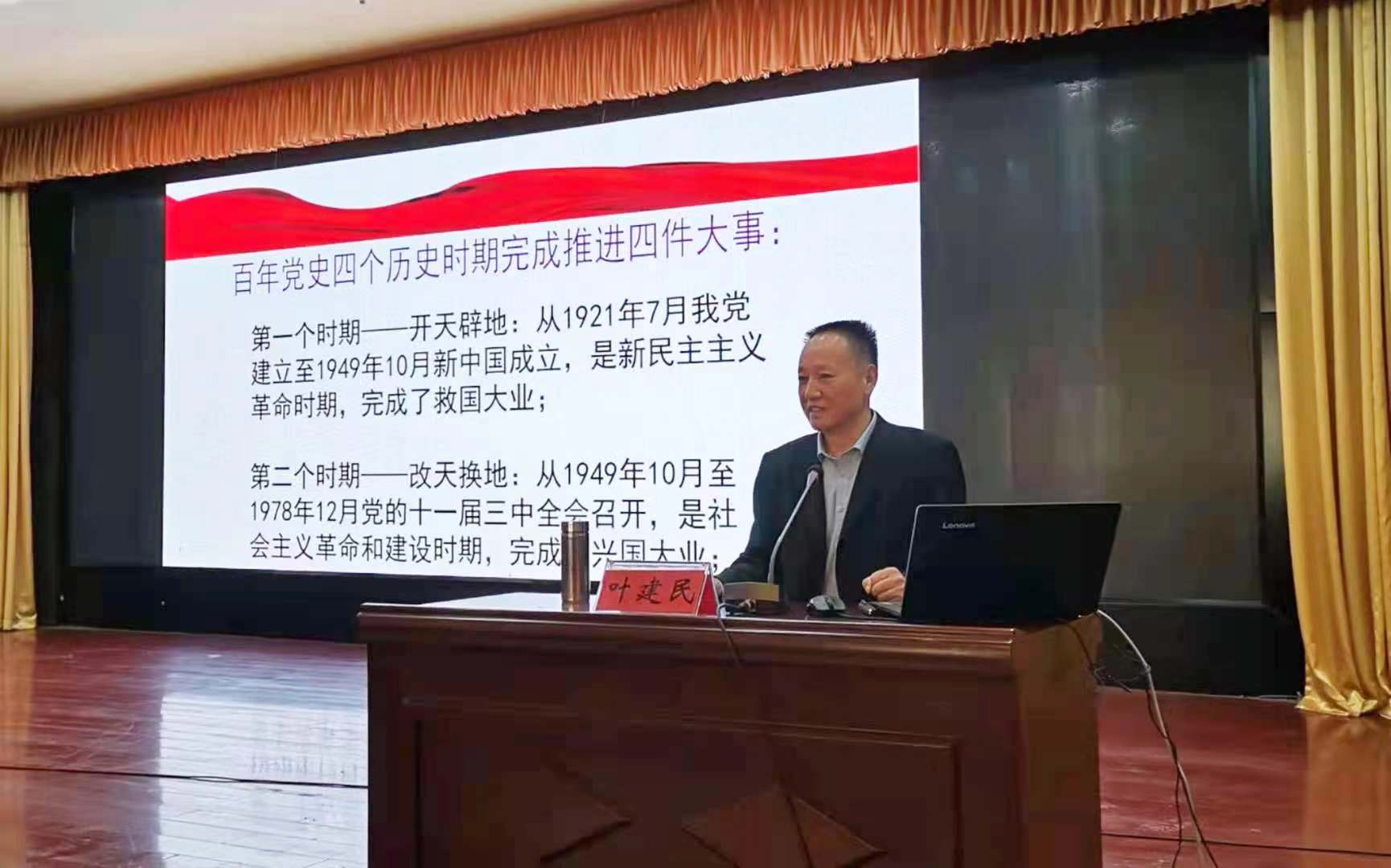 讀書(shū)班還邀請(qǐng)了中國(guó)人民解放軍陸軍步兵學(xué)院石家莊校區(qū)副軍級(jí)教授葉建民以《二十八年浴血奮戰(zhàn) 七十二年成就輝煌》為題作專題輔導(dǎo)授課。葉教授圍繞“決定我黨命運(yùn)的五次重要會(huì)議、對(duì)我黨有特殊貢獻(xiàn)的四位人物、我黨迎來(lái)了百年未有之大變局”三個(gè)方面內(nèi)容,以豐富詳實(shí)的黨史故事、史實(shí)資料,闡釋了中國(guó)共產(chǎn)黨百年輝煌的光輝歷程、歷史經(jīng)驗(yàn)、初心和使命。