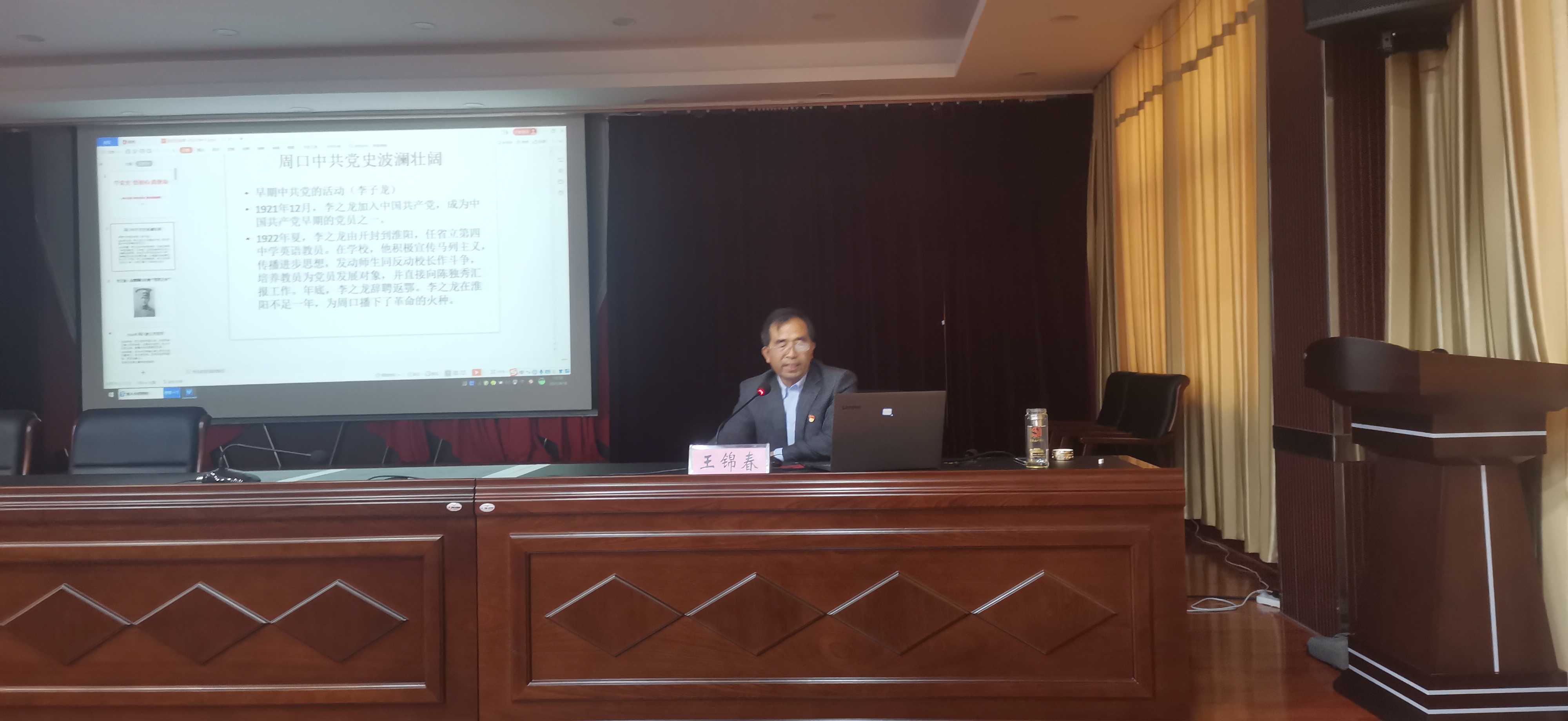 報(bào)告會(huì)上,王錦春結(jié)合周口黨史資料和采訪的內(nèi)容,講述了發(fā)生在周口大地上的紅色故事和戰(zhàn)斗傳奇。在這些傳奇故事中,既有早期周口革命火種的傳播者,也有浴血奮戰(zhàn)的抗日民族英雄,既有奮勇殺敵不怕?tīng)奚膬?yōu)秀共產(chǎn)黨員,也有全力參與解放戰(zhàn)爭(zhēng)的支前平民英雄等,使與會(huì)人員對(duì)中國(guó)共產(chǎn)黨在革命過(guò)程中作出的巨大犧牲、展現(xiàn)的巨大勇氣、彰顯的巨大力量有了更加深刻的感悟和了解。