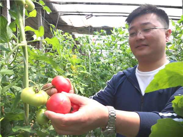 種植番茄是理三家族的支柱產(chǎn)業(yè)。他的父親理效明是原皮營鄉(xiāng)雙樓村主任,一心想帶領(lǐng)鄉(xiāng)親們發(fā)家致富的理效明,自1996年開始就嘗試著發(fā)展大棚番茄種植。幾年下來,村民們從中嘗到了甜頭,當(dāng)時(shí)的大棚番茄種植小具規(guī)模。高中下學(xué)后的理三于2010年便一頭扎進(jìn)大棚里,潛心專攻大棚番茄種植。第一年在36畝地上建了6個(gè)棚,當(dāng)年就收益30多萬元。