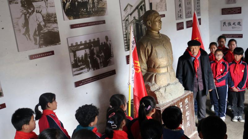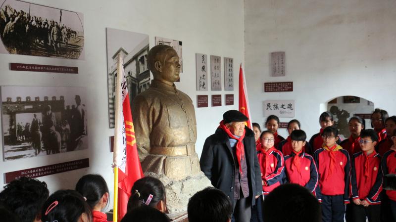 在全國上下掀起黨史學習教育熱潮之際,近日,來自吉鴻昌小學六(1)班的30名孩子,在學校少先隊輔導員的帶領下來到呂潭學校舊址,開展主題為“弘揚鴻昌精神、傳承紅色基因”的主題隊會活動,參觀了吉鴻昌學校和吉鴻昌故居,循著英雄的足跡,親身感受吉鴻昌精神的內涵,接受一場紅色的精神洗禮。期間,在吉鴻昌將軍塑像前,何國志老人生動地講解了吉鴻昌將軍親手斃堂侄、創(chuàng)辦吉鴻昌學校、首次向中國人介紹電視等身前事跡,在場的孩子感動得熱淚盈眶。 “聽了何爺爺的講述,我被吉鴻昌將軍的事跡深深感動,長大后也要成為一名像他一樣的人!”張晨曦同學說。