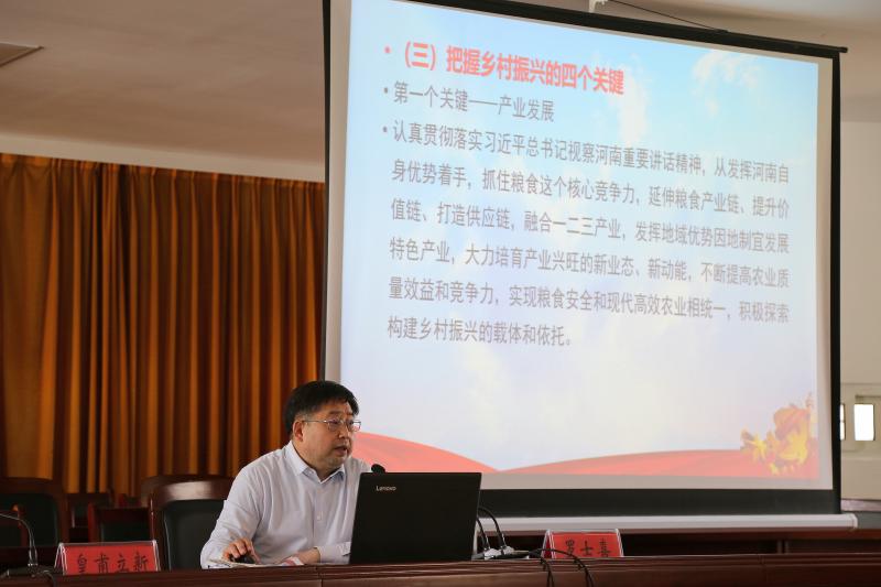 按照省委統(tǒng)一部署,4月19日上午,黨史學(xué)習(xí)教育省委宣講團(tuán)到沈丘縣作專題宣講報告。黨史學(xué)習(xí)教育省委宣講團(tuán)第七組組長、河南牧業(yè)經(jīng)濟(jì)學(xué)院校長羅士喜作宣講報告。沈丘縣委書記皇甫立新主持報告會并講話。賈慶偉、殷曉春、趙振、段然、郝四春、劉和輝、曹新旺、馬偉、夏立文、呂孝坤等縣委理論學(xué)習(xí)中心組成員與全縣廣大黨員干部認(rèn)真聆聽了報告。